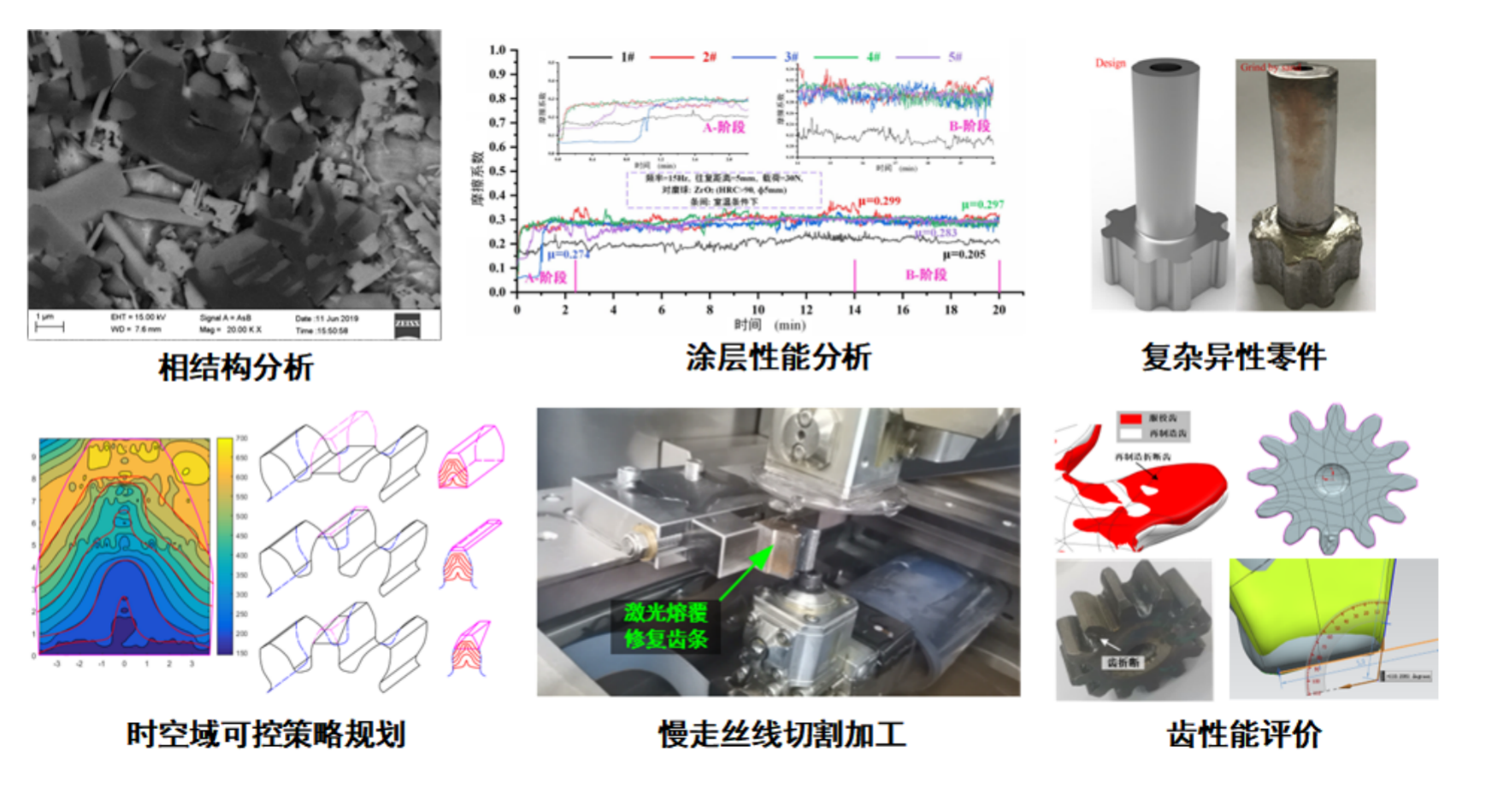 開展了復(fù)雜零件激光熔覆增材制造及再制造研究,探明了工藝參數(shù)、搭接方式與材料微觀結(jié)構(gòu)和性能間的關(guān)系;研究了鎳基陶瓷激光熔覆增材制造材料設(shè)計(jì)和制造工藝,實(shí)現(xiàn)了激光熔覆金屬基陶瓷強(qiáng)化涂層增強(qiáng)傳動(dòng)零部件表面性能。
