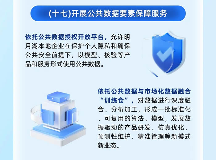 第三,開展公共數據要素保障服務,允許企業以模型、核驗等產品和服務形式使用公共數據,形成一批標準化、可復用的算法、模型,發展數據驅動的產品研發、仿真優化、預測性維護、精準管理等新模式新業態。