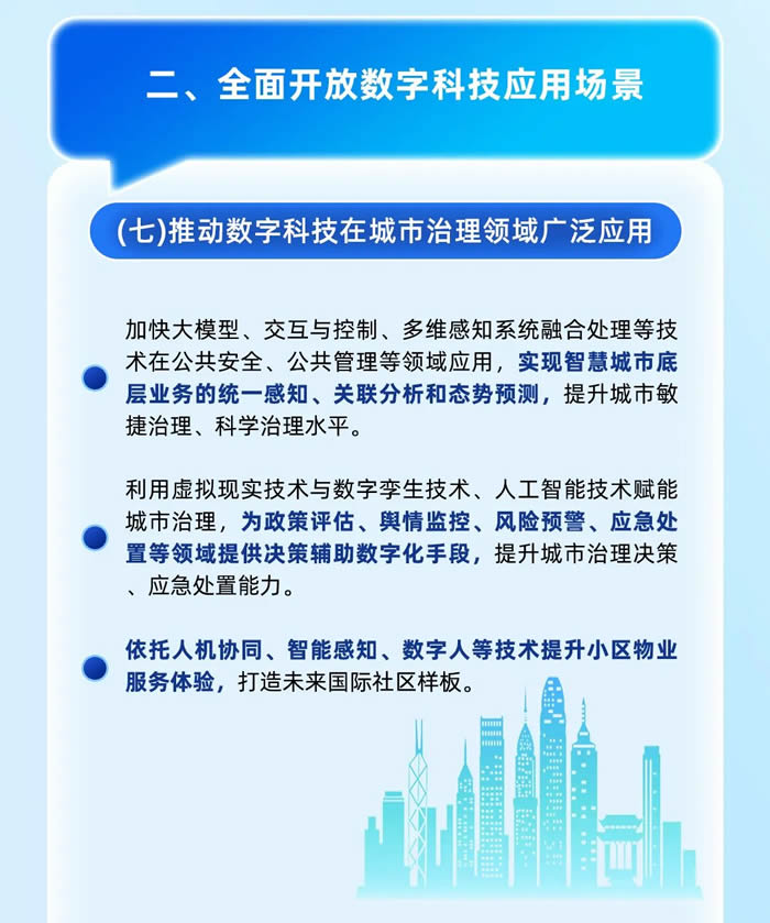 其中,城市治理領域將實現智慧城市底層業務的統一感知、關聯分析和態勢預測,為政策評估、輿情監控、風險預警、應急處置等領域提供決策輔助數字化手段,依托人機協同、智能感知、數字人等技術提升小區物業服務體驗,打造未來國際社區樣板。