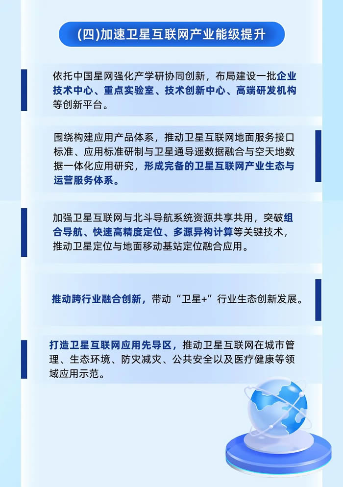 在較受關注的衛星互聯網產業方面,將布局建設一批企業技術中心、重點實驗室、技術創新中心、高端研發機構等創新平臺,形成完備的衛星互聯網產業生態與運營服務體系,突破組合導航、快速高精度定位、多源異構計算等關鍵技術,推動跨行業融合創新,打造衛星互聯網應用先導區。