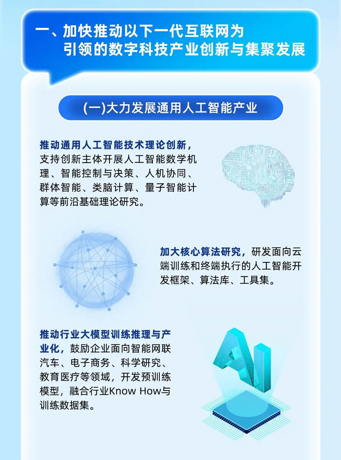 據了解,《措施》共計二十四條,包括大力發展六大產業方向、全面開放五大應用場景,加快構建三類數字基礎設施,創新提供六類服務權威便捷合規保障服務、強化四個要素保障措施。