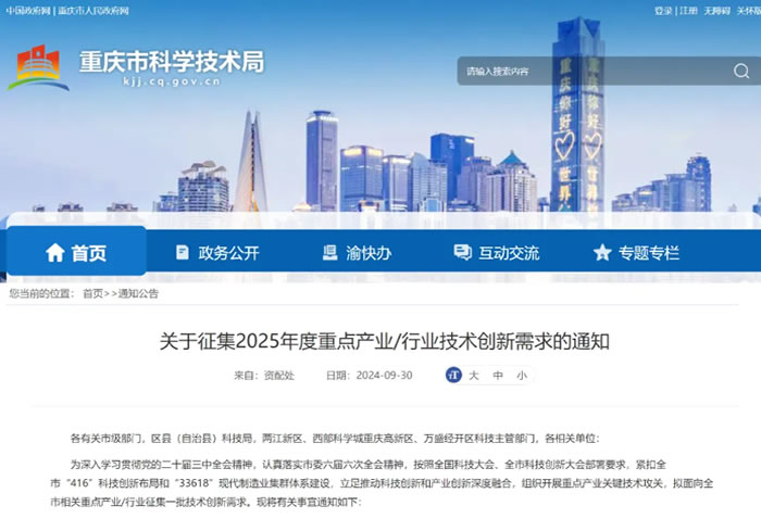科技動態 | 關于征集2025年度重點產業/行業技術創新需求的通知
