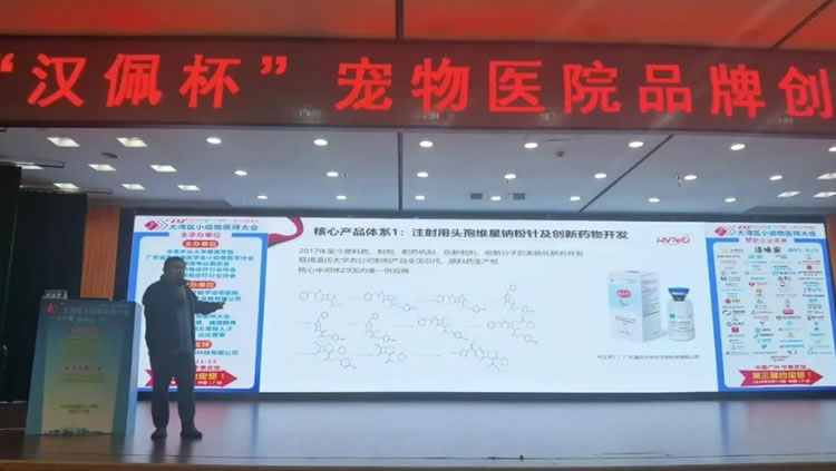 漢佩生物CTO何東賢在“大灣區小動物醫師大會”介紹漢佩生物的新獸藥
