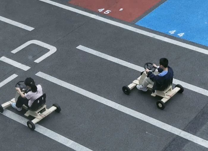 "3、2、1,出發!"吉林大學重慶研究院的戶外廣場上,一群小賽車手正駕駛迷你卡丁車進行趣味比賽。這不是普通的游樂項目,而是研究院特別設計的汽車工程實踐課。孩子們在研學老師的指導下,詳細了解到了汽車發動機的工作原理,用扭力扳手調整車輪定位,理解四輪平衡的重要性等。