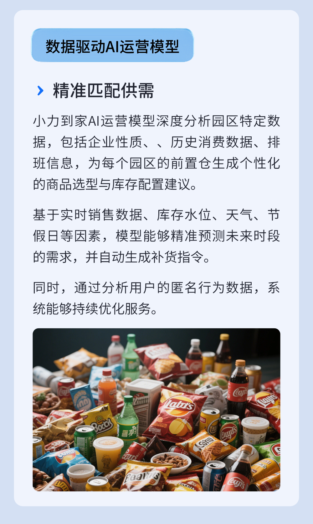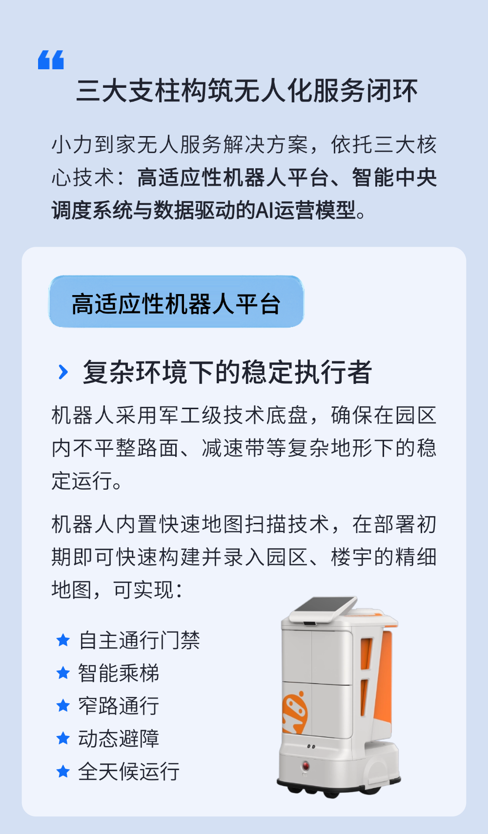 科研成果 以“產業化”為核心發展目標,助力重慶經濟發展 小力到家:為廠區/園區構建高效、安全的智慧供給體系 在工業園區、科技園區、大型廠區等場景中,傳統的物資配送與零售服務面臨多重挑戰:嚴格的安保要求限制了外部人員頻繁出入,復雜的內部動線增加了物流成本,而員工密集且規律的工作生活節奏又催生了大量即時性、集中性的消費與物資需求。 返回列表