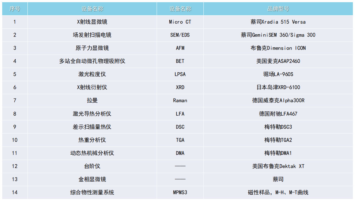 明月湖材料檢測(cè)共享中心設(shè)備清單